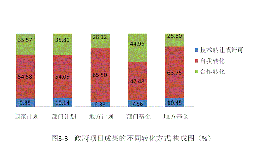 表3-3 2013 -2015年地區(qū)產(chǎn)業(yè)化應用的成果比例分布(%)
