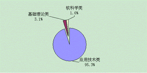 從成果類別看,應(yīng)用技術(shù)類成果705項(xiàng),占成果登記總數(shù)的95.3%;基礎(chǔ)理論類成果23項(xiàng),占登記總數(shù)的3.1%;軟科學(xué)類成果12項(xiàng),占登記總數(shù)的1.6%。