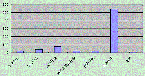 從成果來(lái)源看,國(guó)家計(jì)劃項(xiàng)目占成果總數(shù)的2.4%,部門計(jì)劃項(xiàng)目占總數(shù)的5.54%;地方計(jì)劃項(xiàng)目占總數(shù)的10.8%;部門及地方基金項(xiàng)目占成果總數(shù)的3.24%;橫向委托和自選課題項(xiàng)目分別占成果總數(shù)的2.57%和73.5%;其他來(lái)源項(xiàng)目占成果總數(shù)的1.49%。