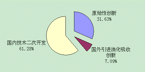 在705項(xiàng)應(yīng)用技術(shù)成果中,原始性創(chuàng)新成果223項(xiàng),占31.63%,國(guó)外引進(jìn)消化吸收創(chuàng)新50項(xiàng),占7.09%,國(guó)內(nèi)技術(shù)二次開(kāi)發(fā)432項(xiàng),占61.28%;處于成熟應(yīng)用階段的成果623項(xiàng),占88.37%;處于中試或設(shè)備的樣機(jī)、試樣等中期階段的成果53項(xiàng),占7.52%;處于實(shí)驗(yàn)室、小試等初期階段的成果29項(xiàng),占4.11%。