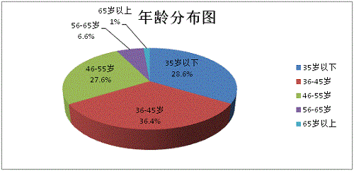 按科技成果完成人員年齡統(tǒng)計(jì):35歲以下為1146人,36-45歲為1458人,46-55歲為1107人,56-65歲為262人,65歲以上為31人。