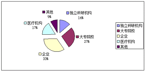 在登記的200項(xiàng)科技成果中,獨(dú)立科研機(jī)構(gòu)完成28項(xiàng)約占14%,大專院校完成53項(xiàng)約占27%,企業(yè)完成68項(xiàng)約占33%,醫(yī)療機(jī)構(gòu)完成34項(xiàng)約占17%,其他完成17項(xiàng)約占9%。數(shù)據(jù)表明,企業(yè)完成成果數(shù)量位列第一。