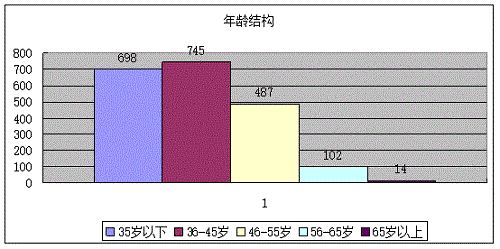 3、年齡結(jié)構(gòu):按科技成果完成人員年齡統(tǒng)計(jì),35歲以下為694人,36-45歲為745人,46-55歲為487人,56-65歲為102人,65歲以上為14人。數(shù)據(jù)表明,中青年科技人員是科技成果創(chuàng)造的主體,而35歲以下的青年科技人員逐步成為科技創(chuàng)新的骨干力量。