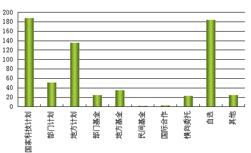 本年度統(tǒng)計(jì)的科技成果中,國家科技計(jì)劃項(xiàng)目188項(xiàng),占29%;部門計(jì)劃項(xiàng)目51項(xiàng)目,占8%;地方計(jì)劃項(xiàng)目136項(xiàng),占20%;自選項(xiàng)目184項(xiàng),占27%。國家科技計(jì)劃、地方計(jì)劃、自選項(xiàng)目是課題的主要來源。