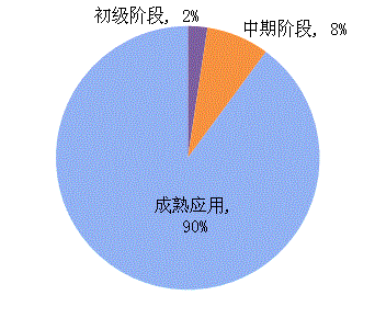 本年度統(tǒng)計(jì)的科技成果,處于初級(jí)階段的成果有14項(xiàng),中期階段的成果有45項(xiàng),成熟應(yīng)用階段的成果有524項(xiàng),其中成熟應(yīng)用階段成果占90%。