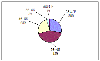 按科技成果完成人員按年齡統(tǒng)計:35歲以下為1641人,36-45歲為2472人,46-55歲為1437人,56-65歲為204人,65歲以上為79人??梢钥闯?5歲以下和36-45歲的科技人員是承擔科技成果研發(fā)工作的主體。
