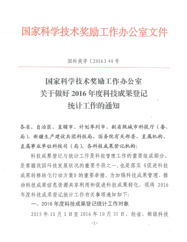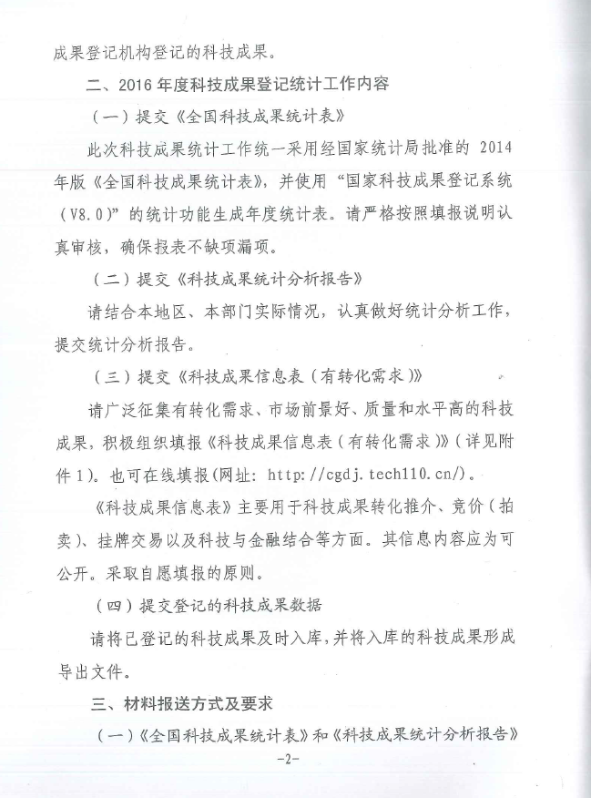 關(guān)于做好2016年度科技成果登記統(tǒng)計(jì)工作的通知