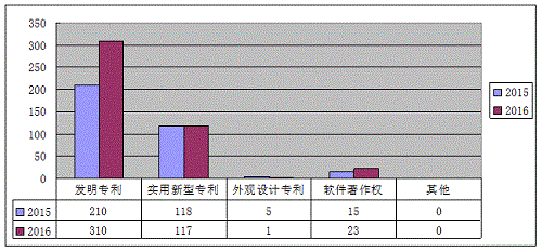 2016年知識產(chǎn)權(quán)數(shù)共計511項,其中發(fā)明專利310項,實(shí)用新型專利117項,外觀設(shè)計專利1項,軟件著作權(quán)23項,其他0項。已授權(quán)專利數(shù)共計329項,其中企業(yè)199項,獨(dú)立科研機(jī)構(gòu)9項,大專院校102項,醫(yī)療機(jī)構(gòu)18項,其它1項。與去年數(shù)據(jù)對比分析,今年的知識產(chǎn)權(quán)數(shù)與去年相比有所提高。