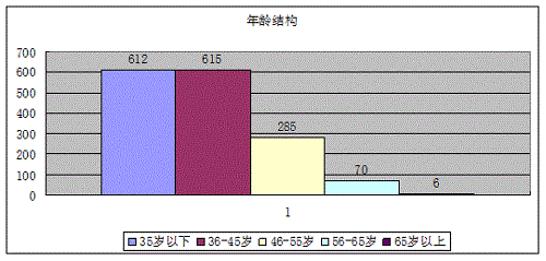 3、年齡結(jié)構(gòu):按科技成果完成人員年齡統(tǒng)計,35歲以下為612人,36-45歲為615人,46-55歲為285人,56-65歲為70人,65歲以上為6人。數(shù)據(jù)表明,中青年科技人員是科技成果創(chuàng)造的主體,而35歲以下的青年科技人員逐步成為科技創(chuàng)新的骨干力量。