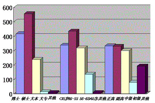 圖5:2016年度成果完成人文化程度、年齡結(jié)構(gòu)、技術(shù)職稱(chēng)分布