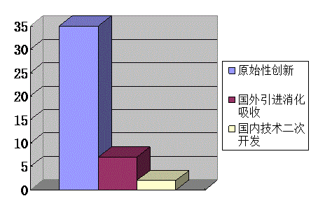應(yīng)用技術(shù)成果類(lèi)項(xiàng)目中原始性創(chuàng)新項(xiàng)目為76項(xiàng),國(guó)外引進(jìn)消化吸收為9項(xiàng),國(guó)內(nèi)技術(shù)二次開(kāi)發(fā)為23項(xiàng),分別占項(xiàng)目總數(shù)的73.37%、8.33%、21.3%。具體情況見(jiàn)圖7。