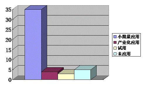 應(yīng)用技術(shù)成果類(lèi)項(xiàng)目中小批量或小范圍應(yīng)用項(xiàng)目為62項(xiàng),占總數(shù)的57.41%。其中,獨(dú)立科研機(jī)構(gòu)和大專(zhuān)院校分別為18項(xiàng)、36項(xiàng),分別占小批量或小范圍應(yīng)用項(xiàng)目總數(shù)的29.03、58.06%;試用項(xiàng)目為34項(xiàng),占總數(shù)的31.48%;產(chǎn)業(yè)化應(yīng)用項(xiàng)目、未應(yīng)用項(xiàng)目分別為9項(xiàng)和5項(xiàng),分別占總數(shù)的8.33%和4.63%。其中,技術(shù)問(wèn)題是未應(yīng)用項(xiàng)目的主要原因。