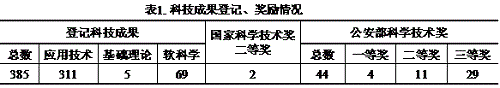 2016年度,我部共完成科技成果登記385項(xiàng),獲國(guó)家科學(xué)技術(shù)進(jìn)步獎(jiǎng)2項(xiàng),評(píng)出公安部科學(xué)技術(shù)獎(jiǎng)44項(xiàng)(見(jiàn)表1)。