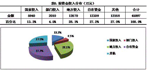 2016年度登記成果的經(jīng)費(fèi)實(shí)際投入額總計(jì)45097萬(wàn)元。其中,國(guó)家投入5940萬(wàn)元,占13.2%;部門(mén)投入2010萬(wàn)元,占4.5%;地方投入12670萬(wàn)元,占28.1%;自有資金12309萬(wàn)元,占27.2%;其他投入12168萬(wàn)元,占27.0%(見(jiàn)表6)。