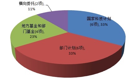 來(lái)源于國(guó)家科技計(jì)劃的成果6項(xiàng),占33%;部門計(jì)劃成果6項(xiàng),占33%(見(jiàn)圖2)。