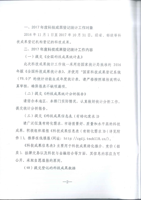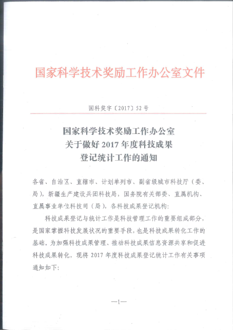 國家科學(xué)技術(shù)獎勵工作辦公室關(guān)于做好2017年度科技成果登記與統(tǒng)計工作的通知