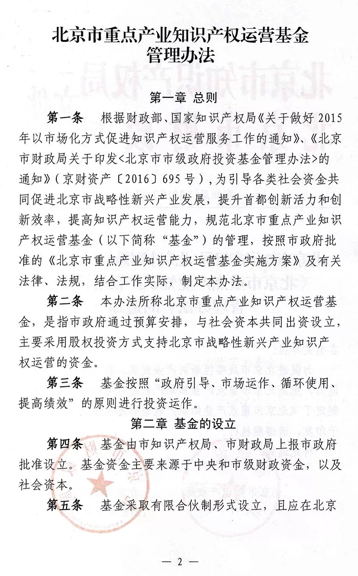 北京市重點(diǎn)產(chǎn)業(yè)知識(shí)產(chǎn)權(quán)運(yùn)營(yíng)基金管理辦法