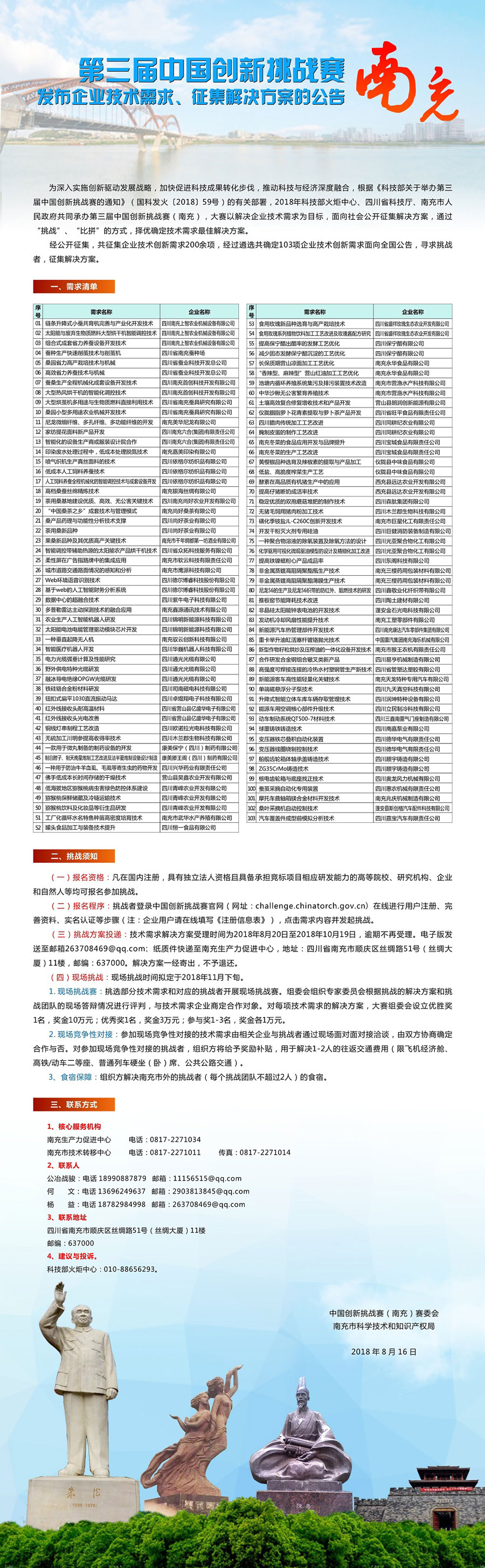 動(dòng)態(tài) | 第三屆中國(guó)創(chuàng)新挑戰(zhàn)賽(南充)需求公告