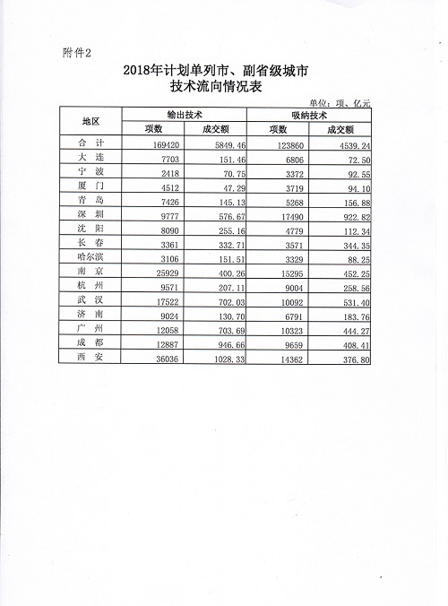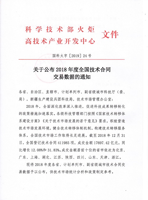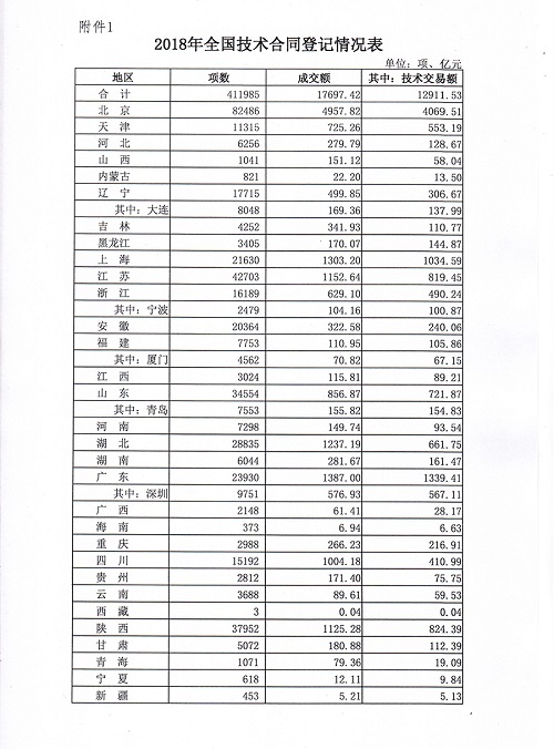 關(guān)于公布2018年度全國(guó)技術(shù)合同交易數(shù)據(jù)的通知