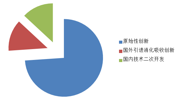 應(yīng)用技術(shù)成果類項(xiàng)目中原始性創(chuàng)新項(xiàng)目為34項(xiàng),國(guó)外引進(jìn)消化吸收創(chuàng)新為6項(xiàng),國(guó)內(nèi)技術(shù)二次開(kāi)發(fā)為6項(xiàng),分別占項(xiàng)目總數(shù)的73.91%、13.04%和13.04%。具體情況見(jiàn)圖8。
