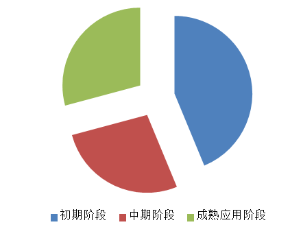 應(yīng)用技術(shù)成果類項(xiàng)目的應(yīng)用水平達(dá)到國(guó)際先進(jìn)、國(guó)內(nèi)領(lǐng)先、國(guó)內(nèi)先進(jìn)和國(guó)內(nèi)一般的項(xiàng)目分別是1項(xiàng)、16項(xiàng)、13項(xiàng)和3項(xiàng),未評(píng)價(jià)為15項(xiàng)。應(yīng)用技術(shù)成果類項(xiàng)目大部分分別處于初期階段、中期階段和成熟應(yīng)用階段的項(xiàng)目分別為21項(xiàng)、13項(xiàng)和14項(xiàng)。應(yīng)用成果水平和成果所處階段分布見(jiàn)圖9、10。