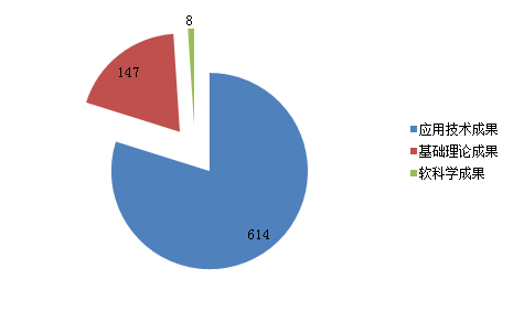 2018年江蘇科技成果類別仍然以應(yīng)用技術(shù)成果為主,共計(jì)614項(xiàng),占80%;基礎(chǔ)理論成果147項(xiàng),占19%。軟科學(xué)成果8項(xiàng)。