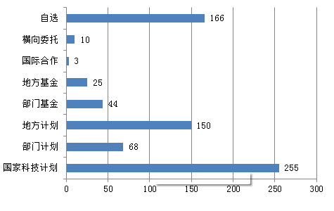2018年江蘇省科技成果登記總數(shù)中,課題來(lái)源于國(guó)家科技計(jì)劃項(xiàng)目255項(xiàng),其中:科技重大專項(xiàng)22項(xiàng),自然科學(xué)基金111項(xiàng),重點(diǎn)基礎(chǔ)研究發(fā)展計(jì)劃20項(xiàng),高技術(shù)研究發(fā)展計(jì)劃30項(xiàng),科技支撐計(jì)劃19項(xiàng),星火計(jì)劃5項(xiàng),火炬計(jì)劃14項(xiàng),國(guó)家重點(diǎn)新產(chǎn)品計(jì)劃2項(xiàng),國(guó)際科技合作專項(xiàng)3項(xiàng),科技型中小企業(yè)技術(shù)創(chuàng)新基金10項(xiàng),重大科學(xué)儀器設(shè)備開發(fā)專項(xiàng)1項(xiàng),農(nóng)業(yè)科技成果轉(zhuǎn)化資金2項(xiàng),科技富民強(qiáng)縣專項(xiàng)行動(dòng)計(jì)劃1項(xiàng),科研院所技術(shù)開發(fā)研究專項(xiàng)資金1項(xiàng),其他12項(xiàng)。課題來(lái)源除了國(guó)家科技計(jì)劃外,部門計(jì)劃68項(xiàng),地方計(jì)劃150項(xiàng),部門基金44項(xiàng),地方基金25項(xiàng),國(guó)際合作3項(xiàng),橫向委托10項(xiàng),自選166項(xiàng),