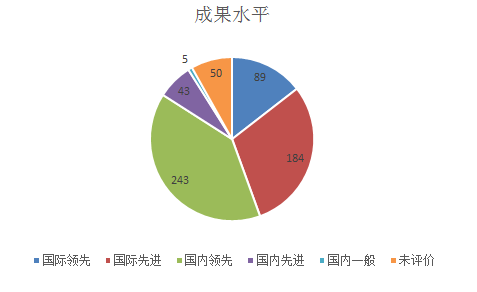 2018年江蘇應(yīng)用技術(shù)成果水平普遍較高,以國(guó)際先進(jìn)與國(guó)內(nèi)領(lǐng)先為主,其中,國(guó)際領(lǐng)先成果89項(xiàng),國(guó)際先進(jìn)成果184項(xiàng),國(guó)內(nèi)領(lǐng)先成果243項(xiàng),國(guó)內(nèi)先進(jìn)成果43項(xiàng),未評(píng)價(jià)成果50項(xiàng)。