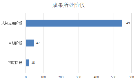 2018年江蘇應(yīng)用技術(shù)成果以成熟應(yīng)用階段為主,共計(jì)549項(xiàng),占總量的71%,其次是處于中期階段的47項(xiàng),初期階段的18項(xiàng)。