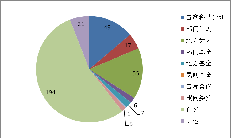2018年青島市科技成果以自選項(xiàng)目成果和各級(jí)財(cái)政支持的各類計(jì)劃項(xiàng)目為主。其中,自選成果194項(xiàng),占成果總數(shù)的54.65%;各級(jí)科技計(jì)劃項(xiàng)目的成果140項(xiàng),占成果總數(shù)的39.44%。各級(jí)科技計(jì)劃項(xiàng)目中,國家科技計(jì)劃成果49項(xiàng),占成果總數(shù)的13.8%,部門科技計(jì)劃項(xiàng)目成果占4.79%,地方科技計(jì)劃項(xiàng)目成果占15.49%。(見圖1)