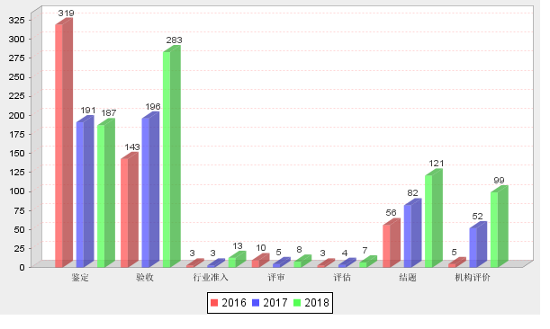 2018年度內(nèi)蒙古自治區(qū)登記成果712項(xiàng),其中:鑒定項(xiàng)目184項(xiàng),驗(yàn)收項(xiàng)目281項(xiàng),評審項(xiàng)目8項(xiàng),行業(yè)準(zhǔn)入項(xiàng)目13項(xiàng),評估項(xiàng)目7項(xiàng),機(jī)構(gòu)評價(jià)99項(xiàng),結(jié)題項(xiàng)目120項(xiàng)。統(tǒng)計(jì)顯示,2018年自治區(qū)科學(xué)技術(shù)登記成果中,鑒定登記成果和驗(yàn)收登記成果數(shù)共占成果總數(shù)的65.3%,通過鑒定與驗(yàn)收的科技成果一直是自治區(qū)科技成果登記的主要來源,但近年來,國家取消了科技成果鑒定,今年鑒定成果登記的數(shù)量較上年有所減少,驗(yàn)收、機(jī)構(gòu)評價(jià)和結(jié)題的成果數(shù)量大幅增加。數(shù)據(jù)顯示,2018年全區(qū)登記成果較上年增加179項(xiàng),較上年增長33.6%,創(chuàng)歷史新高,其中鑒定項(xiàng)目減少7項(xiàng),驗(yàn)收項(xiàng)目增加85項(xiàng),評審項(xiàng)目增加3項(xiàng),行業(yè)準(zhǔn)入增加10項(xiàng),評估項(xiàng)目增加3項(xiàng),機(jī)構(gòu)評價(jià)增加47項(xiàng),結(jié)題項(xiàng)目增加38項(xiàng)。(見圖表1)