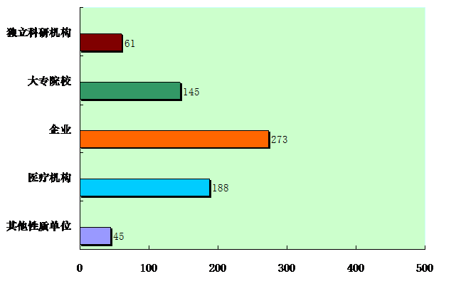 在登記的712項(xiàng)科技成果中,由獨(dú)立科研機(jī)構(gòu)完成的科技成果61項(xiàng),占成果總數(shù)的8.6%;大專院校完成的科技成果145項(xiàng),占成果總數(shù)的20.4%;企業(yè)完成的科技成果273項(xiàng),占成果總數(shù)的38.3%(其中:轉(zhuǎn)制型企業(yè)完成的科技成果92項(xiàng),占企業(yè)完成成果總數(shù)的33%);醫(yī)療機(jī)構(gòu)完成的科技成果188項(xiàng),占成果總數(shù)的26.4%;其他性質(zhì)單位完成的科技成果45項(xiàng),占成果總數(shù)的6.3%。(見圖表3)