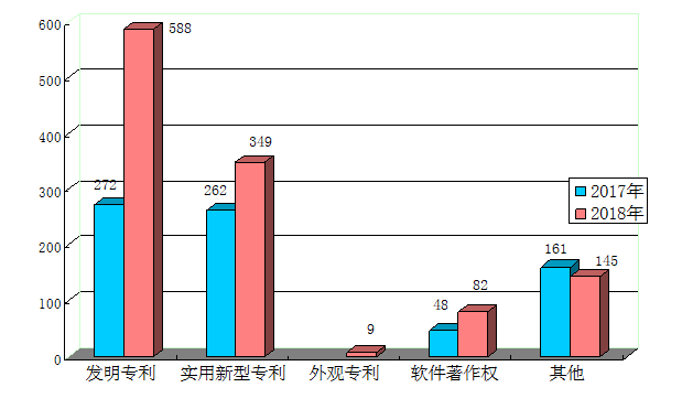 圖表4 2017年—2018年內(nèi)蒙古自治區(qū)登記成果中知識產(chǎn)權(quán)數(shù)對比