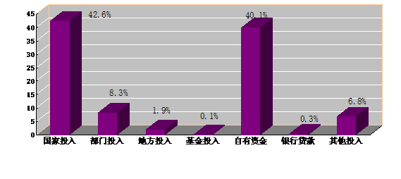 2018年度內(nèi)蒙古自治區(qū)登記的成果,經(jīng)費(fèi)累計(jì)投入2324917萬元,其中,國家投入989254萬元,占投入總額的42.6%;部門投入193559萬元,占投入總額8.3%;地方投入分別為44478萬元,占投入總額的1.9%;基金投入1689萬元,占投入總額的0.1%;自有資金投入931967萬元,占投入總額的40.1%;銀行貸款6444萬元,占投入總額的0.3%;其他資金投入157526萬元,占投入總額的6.8%。數(shù)據(jù)表明,國家和自有資金投入是研究開發(fā)經(jīng)費(fèi)的主要部分。(見圖表10)
