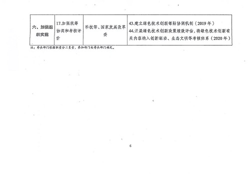 國家發(fā)展改革委、科技部牽頭建立綠色技術(shù)創(chuàng)新部際協(xié)調(diào)機(jī)制。各地區(qū)、各部門要結(jié)合各自實(shí)際,加強(qiáng)政策銜接,制定落實(shí)方案或強(qiáng)化對(duì)相關(guān)領(lǐng)域的創(chuàng)新支持,加強(qiáng)組織領(lǐng)導(dǎo),明確責(zé)任,加大投入力度,切實(shí)落實(shí)各項(xiàng)任務(wù)措施。(國家發(fā)展改革委、科技部牽頭)