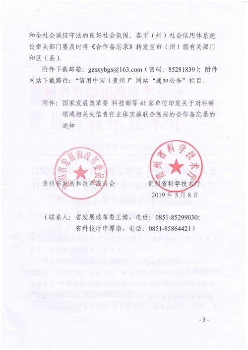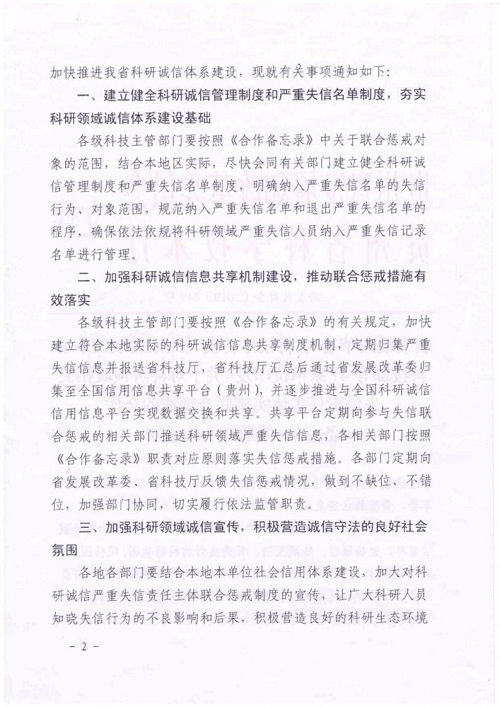 轉(zhuǎn)發(fā)《國(guó)家發(fā)展改革委 科技部等41家單位印發(fā)<關(guān)于對(duì)科研領(lǐng)域相關(guān)失信責(zé)任主體實(shí)施聯(lián)合懲戒的合作備忘錄>的通知》的通知