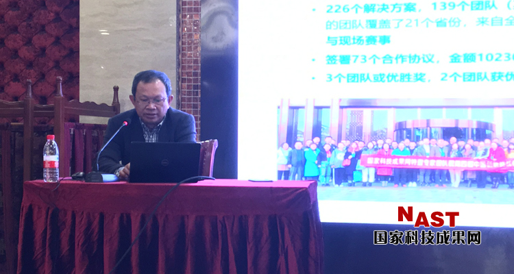 國(guó)家科技成果網(wǎng)主任吳昌權(quán)在現(xiàn)場(chǎng)介紹解決方案征集服務(wù)模式