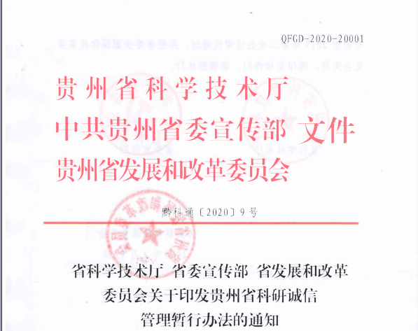 關(guān)于印發(fā)貴州省科研誠信管理暫行辦法的通知
