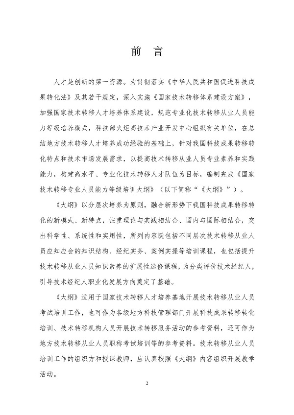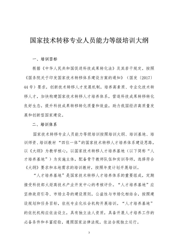 《國家技術(shù)轉(zhuǎn)移專業(yè)人員能力等級培訓(xùn)大綱》發(fā)布