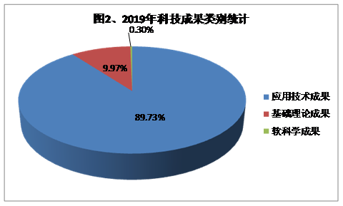 2019年登記成果應(yīng)用技術(shù)成果仍保持著較高的比例,在331項(xiàng)成果中,應(yīng)用技術(shù)成果297項(xiàng),占登記成果的89.73%,其中已應(yīng)用的成果274項(xiàng),未應(yīng)用的成果23項(xiàng),成果未應(yīng)用的主要原因是管理及技術(shù)問(wèn)題。