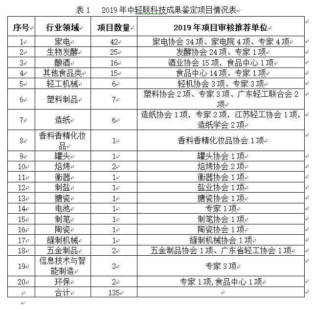 2019年中輕聯(lián)科技成果鑒定項目135項,涉及領(lǐng)域20個。從推薦渠道上看,由行業(yè)協(xié)學(xué)會(中心)審核推薦項目109項、地方行業(yè)組織審核推薦項目3項、專家審核推薦項目19項,研究院所審核推薦4項。從申報主體上看,企業(yè)單獨(dú)申報項目56項、高等院校單獨(dú)申報項目8項、科研院所單獨(dú)申報項目1項、產(chǎn)學(xué)研聯(lián)合申報項目70項。通過成果鑒定的形式,對成果的創(chuàng)新性、先進(jìn)性和成熟性進(jìn)行評價,一方面可以使完成單位意識到不足,進(jìn)一步完善改進(jìn);另一方面可以對科技成果轉(zhuǎn)化和應(yīng)用起到積極的推動作用。