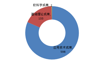 2019年江蘇科技成果類別仍然以應用技術成果為主,共計598項,占82%;基礎理論成果133項,占18%。軟科學成果2項。