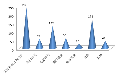 2019年江蘇省科技成果登記總數中,課題來源于國家科技計劃項目239項,其中:科技重大專項16項,自然科學基金106項,其他117項。課題來源除了國家科技計劃外,部門計劃55項,地方計劃132項,部門基金60項,地方基金25項,國際合作1項,橫向委托8項,自選171項,其他42項。