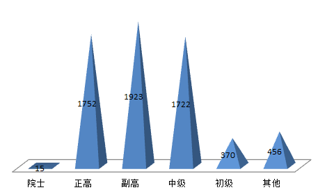 2019年江蘇科技成果完成人的技術職稱構成以中高級以上為主:院士15人次;正高1752人次,副高1923人次,中級1722人次,初級370人次,其他456人次。2019年度江蘇科技城成果完成人的技術職稱構成與上一年度保持平衡。