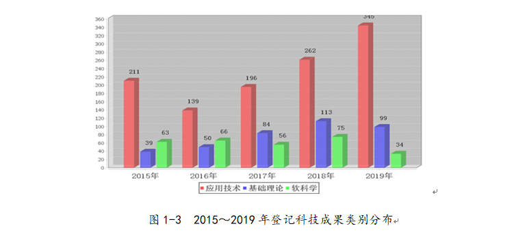 圖1-2 2015~2019年登記科技成果統(tǒng)計分布