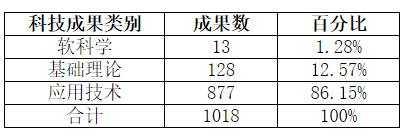 應(yīng)用技術(shù)類成果歷來是氣象部門科技成果中最主要的類型,2019年應(yīng)用技術(shù)類成果登記877項(xiàng),占成果登記總量的86.15%。