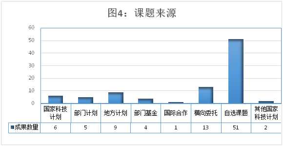2019年中鋼集團登記入庫的科技成果,課題主要來自國家科技計劃、部門計劃、地方計劃、部門基金、國際合作、橫向委托、自選課題、其他國家科技計劃8類。其中自選課題占總登記成果的56%,承擔(dān)國家、地方計劃的成果占18.7%。具體課題來源情況詳見圖4)