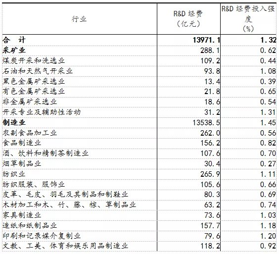 分產(chǎn)業(yè)部門看,高技術(shù)制造業(yè)研究與試驗(yàn)發(fā)展(R&D)經(jīng)費(fèi)3804.0億元,投入強(qiáng)度(與營業(yè)收入之比)為2.41%,比上年提高0.14個(gè)百分點(diǎn);裝備制造業(yè)研究與試驗(yàn)發(fā)展(R&D)經(jīng)費(fèi)7868.0億元,投入強(qiáng)度為2.07%,比上年提高0.16個(gè)百分點(diǎn)。在規(guī)模以上工業(yè)企業(yè)中,研究與試驗(yàn)發(fā)展(R&D)經(jīng)費(fèi)投入超過500億元的行業(yè)大類有9個(gè),這9個(gè)行業(yè)的經(jīng)費(fèi)占全部規(guī)模以上工業(yè)企業(yè)研究與試驗(yàn)發(fā)展(R&D)經(jīng)費(fèi)的比重為69.3%(詳見附表1)。