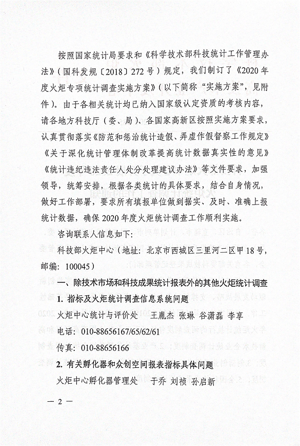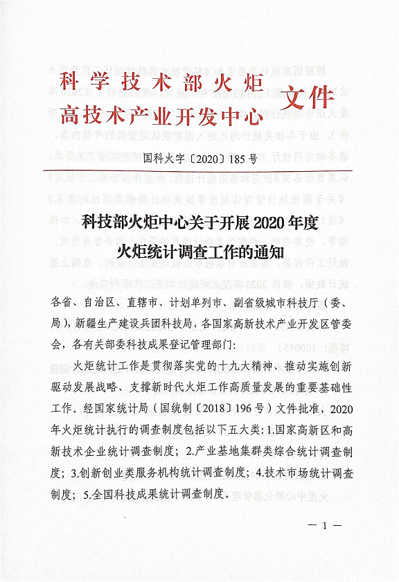 科技部火炬中心關于開展2020年度火炬統(tǒng)計調查工作的通知