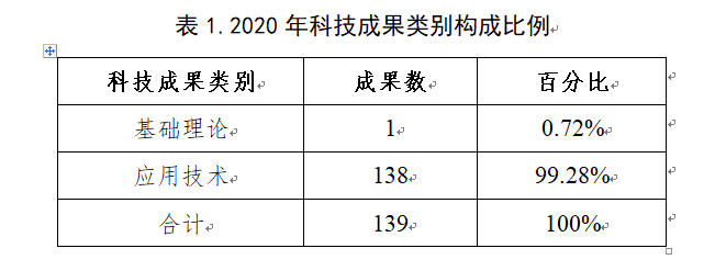 表7. 2020年應(yīng)用技術(shù)類科技成果屬性構(gòu)成